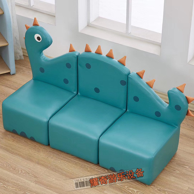 漫画の動物の組み合わせのソファーの幼稚園の児童の柔らかい包みの軟体の3人のソファー。長い椅子の恐竜のソファー。