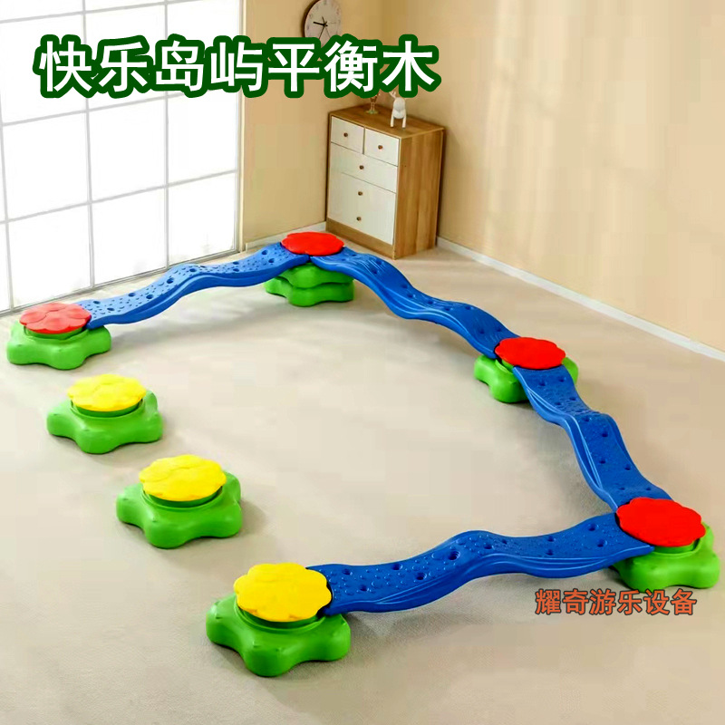 快楽島バランス木. 子供の木の橋は川の石の触覚板を渡って石の教具を踏みます。感覚訓練器材