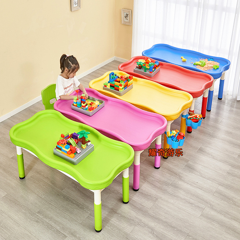 波の長方形の積み木のテーブルは子供のプラスチックのおもちゃのテーブルを昇降することができます。