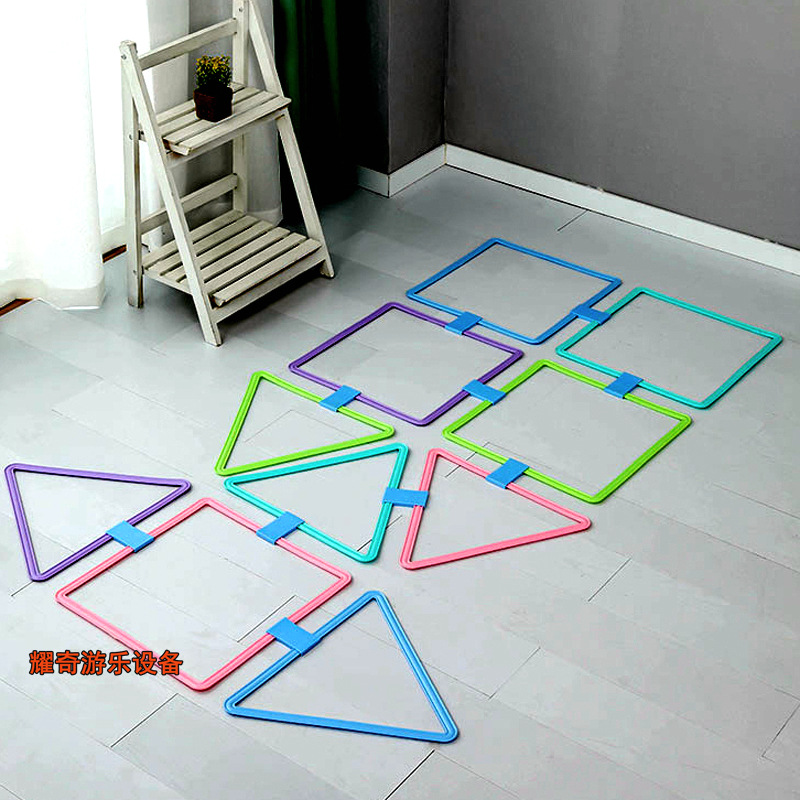 幾何学の跳ぶ格子の子供は家の輪を跳びます。
