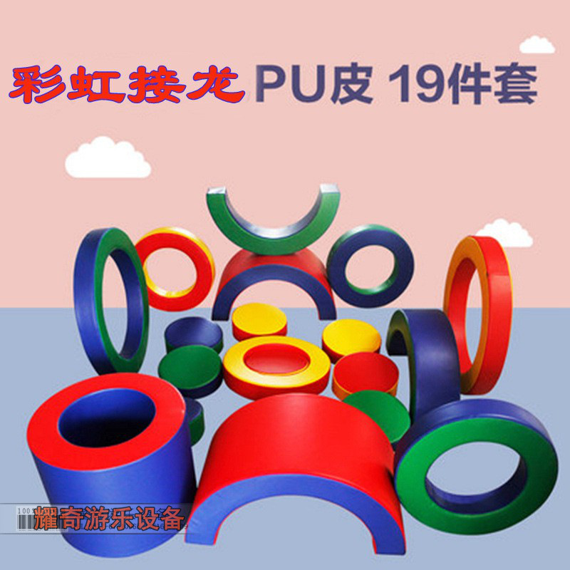 Pu皮虹接龍19件.感覚統合訓練器材幼稚園早教感覚教具軟体積み木