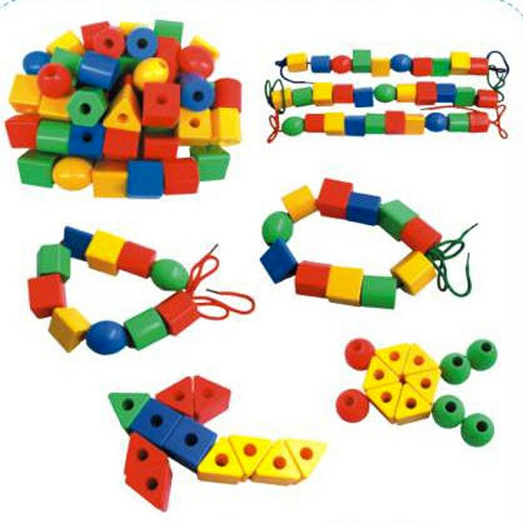 幾何学的なビーズの積み木. 幼稚園の線を通す積み木の子供のデスクトップのおもちゃ。乳幼児教具知育早教
