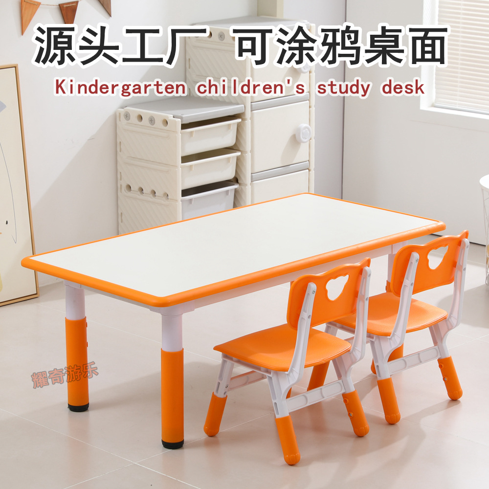 昇降可能落書きテーブル幼稚園の机と椅子の子供の長方テーブルは、絵を描くテーブルを書くことができます。