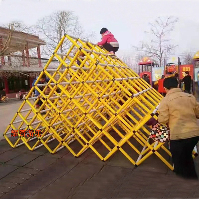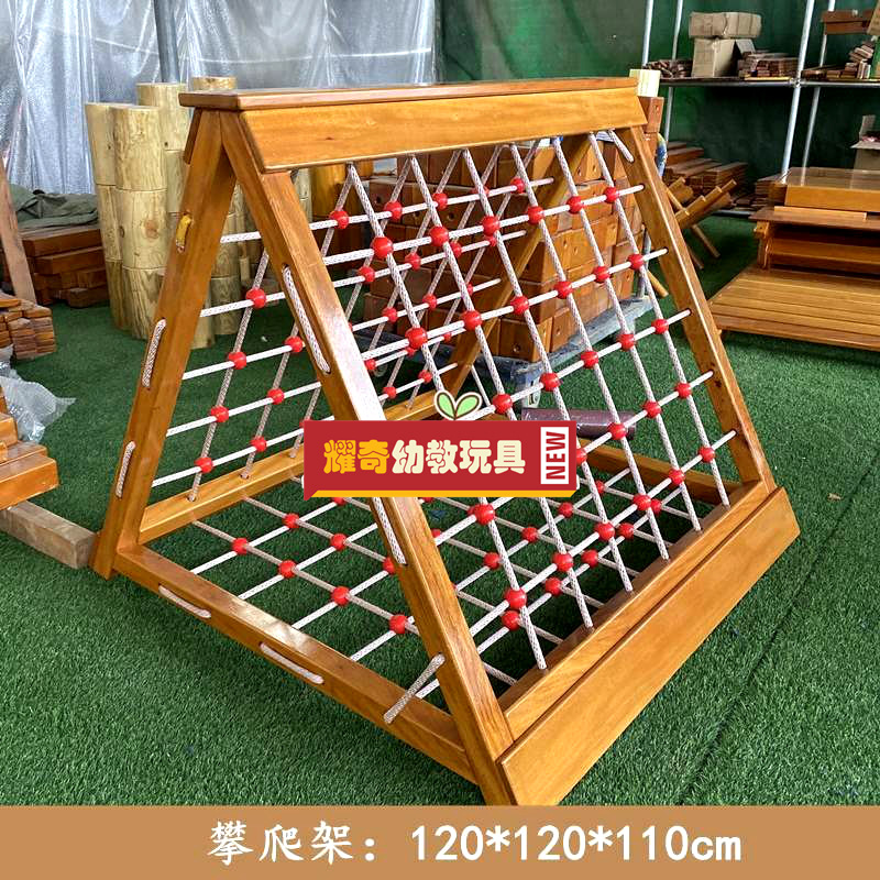 三角網登り. 感覚訓練. 幼稚園の親子教具. 子供の小さいネットに登ります。