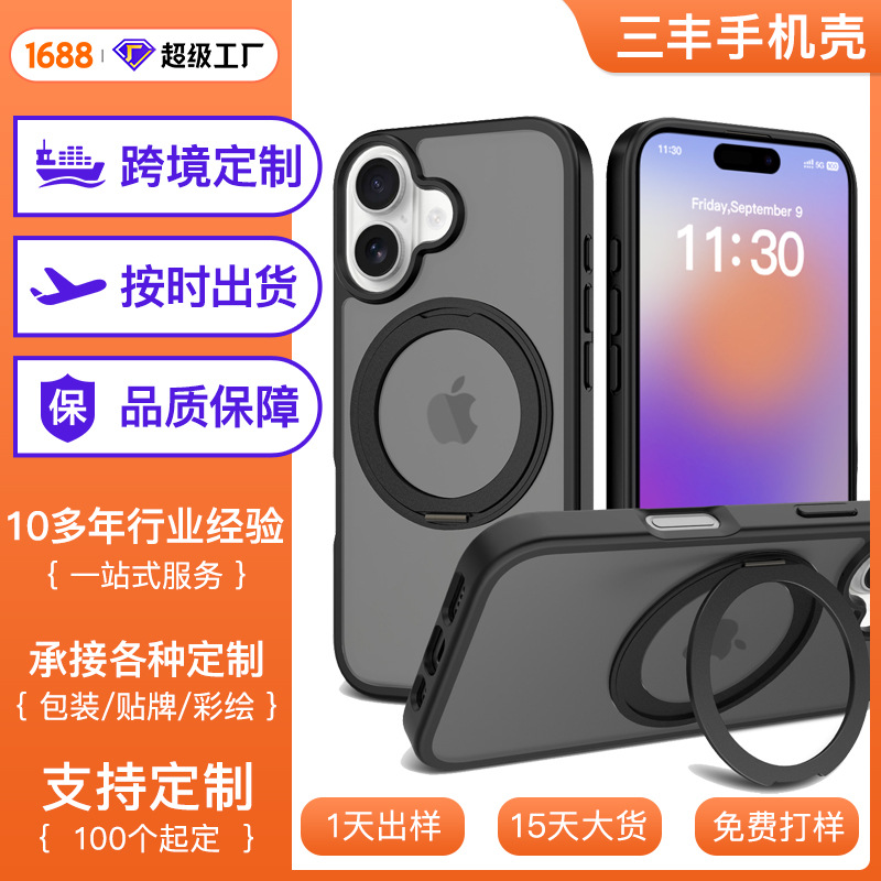 カスタマイズされた Apple 17 携帯電話ケース スタンド付き 360 回転 iPhone16pro 磁気指紋防止スキンフィール携帯電話ケース