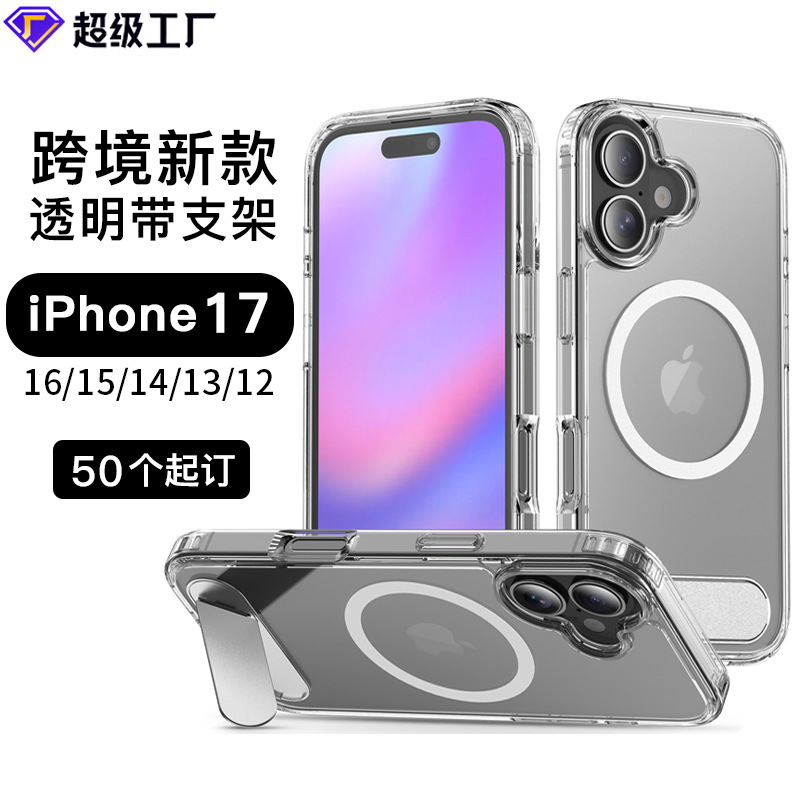 クロスボーダー Apple 17 水平垂直スタンド携帯電話ケース透明磁気車充電 16pro 落下防止保護カバー