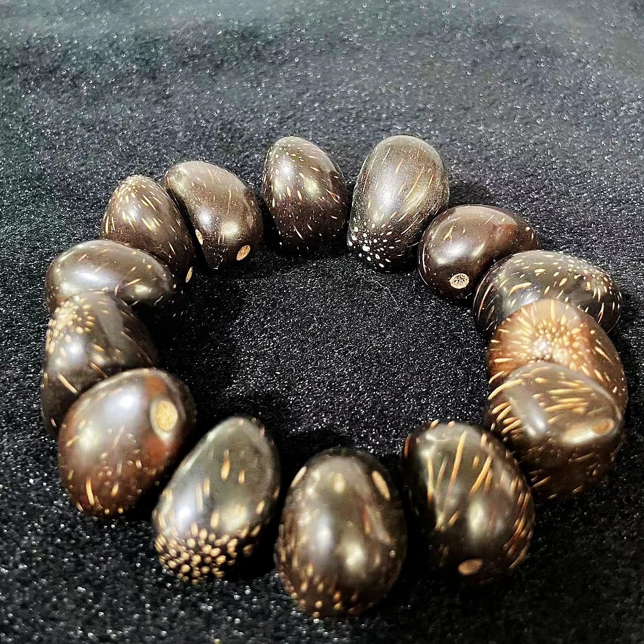 本場海南星月菩提種毛感料原生態0脱脂鶏油黄陳種そろばん玉単輪手串