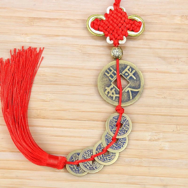 純銅五帝銭ストラップ中国結開口銅瓢箪車掛車内無事掛装飾震え音解決ドアドア