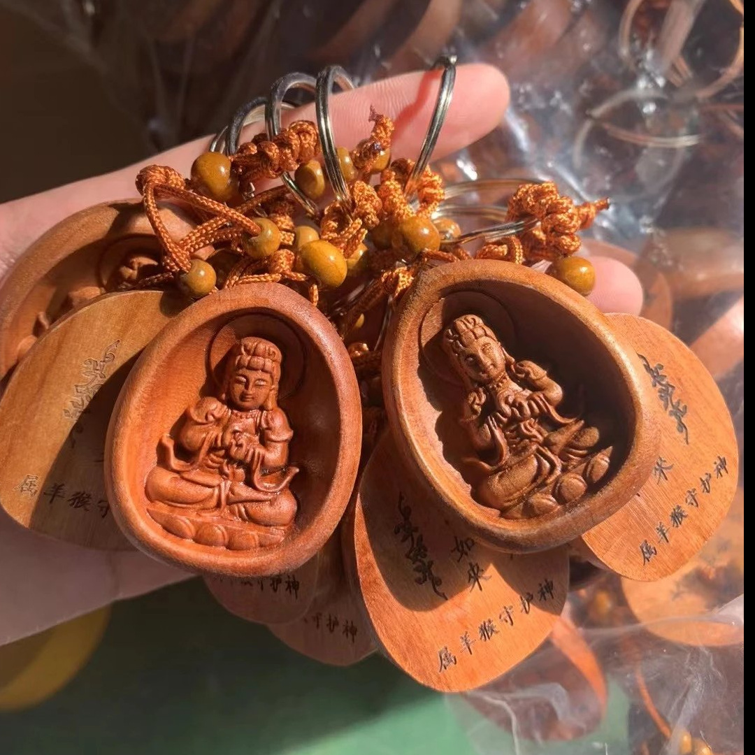 八大守護神桃木キーホルダー十二生肖本命仏自動車キーホルダー菩提キーホルダー