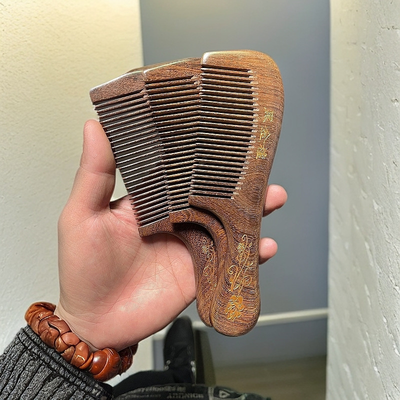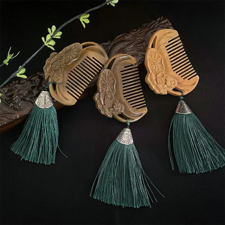 メーカー直販の精彫緑檀櫛天然緑檀櫛彫刻吊り穂付き黒金檀彫刻櫛天然卸売り