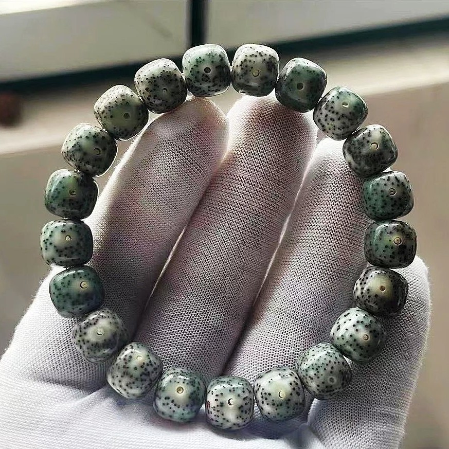 【緑幽霊】原生態石玉料星月菩提海南霊玉料星月単輪手串大量卸売り