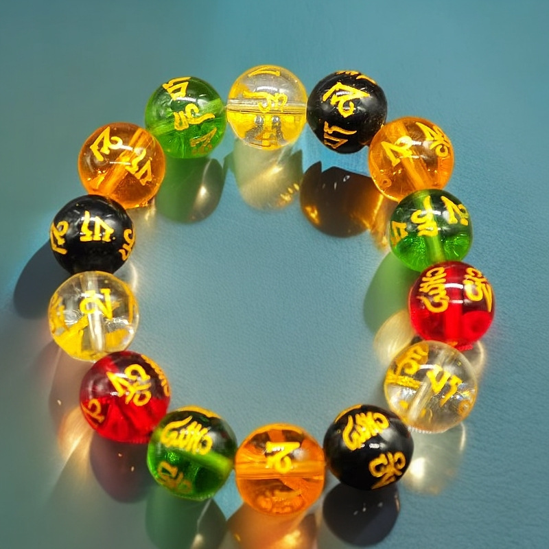 ガラス箔押し六字真言単輪紅白黒無形瑠璃ブレスレットガラスブレスレット卸売り