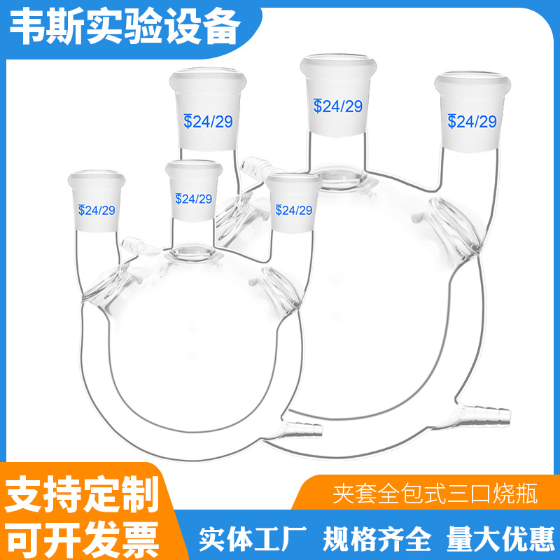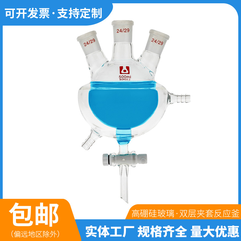 高ホウ素シリコンジャケット三口反応釜四フッ素ピストン二重ガラス反応器250ml-2l三口反応瓶