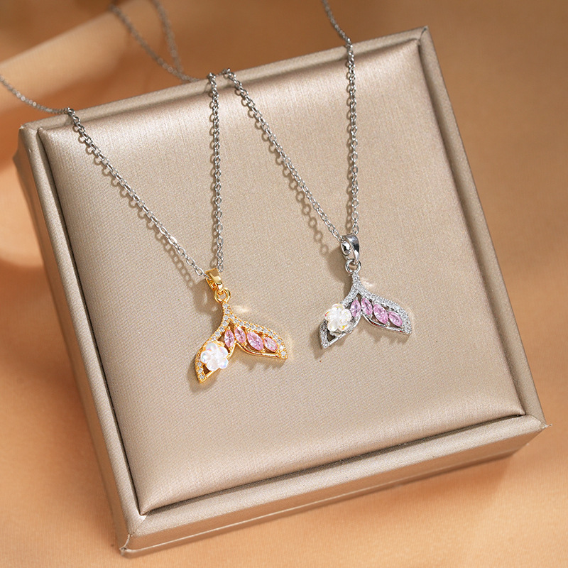 韓国版の甘いデザイン感のあるピンクのダイヤモンドの小さい花の魚の尾のチタンの鋼のネックレスの女性のファッションの百合の小さいジルコンの鎖