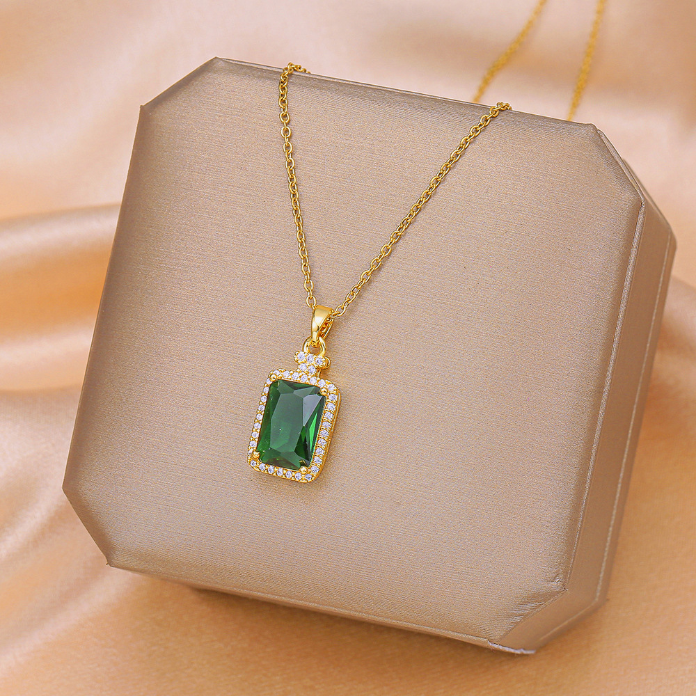ファッションの祖母の緑の宝石の香水瓶のチタンの鋼のネックレスの女性の小さい大衆の軽い豪華な幾何学の鎖の鎖は少しジルコンの装飾品を入れます。