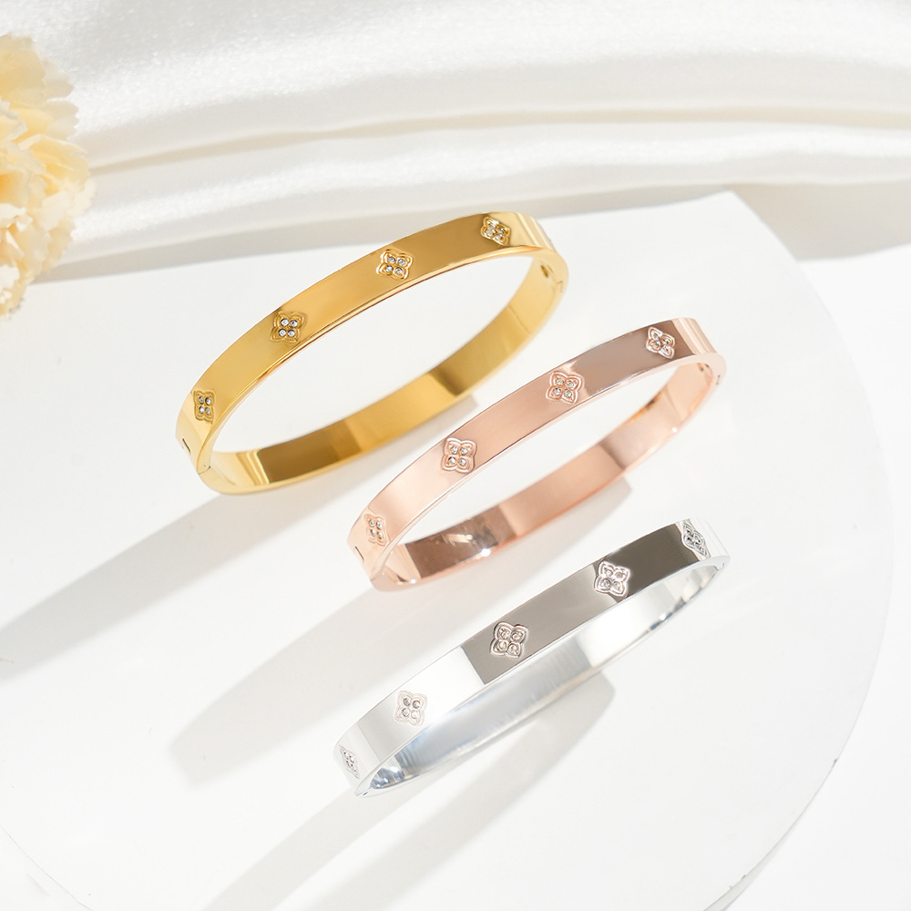 国境を越えた貿易ファッションマイクロ象嵌菱形四つ葉のクローバーチタン鋼ブレスレット女性用真空電気メッキ色保持多用途ブレスレット卸売