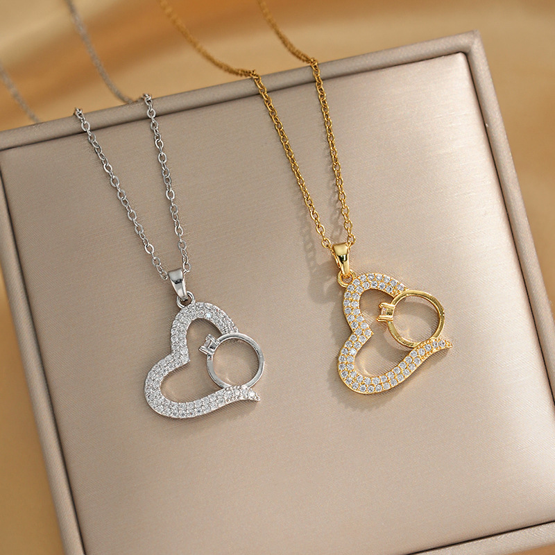 ファッションロマンチックな愛の指輪のペンダントチタン鋼のネックレスの女性はジルコンの気質を象眼します。