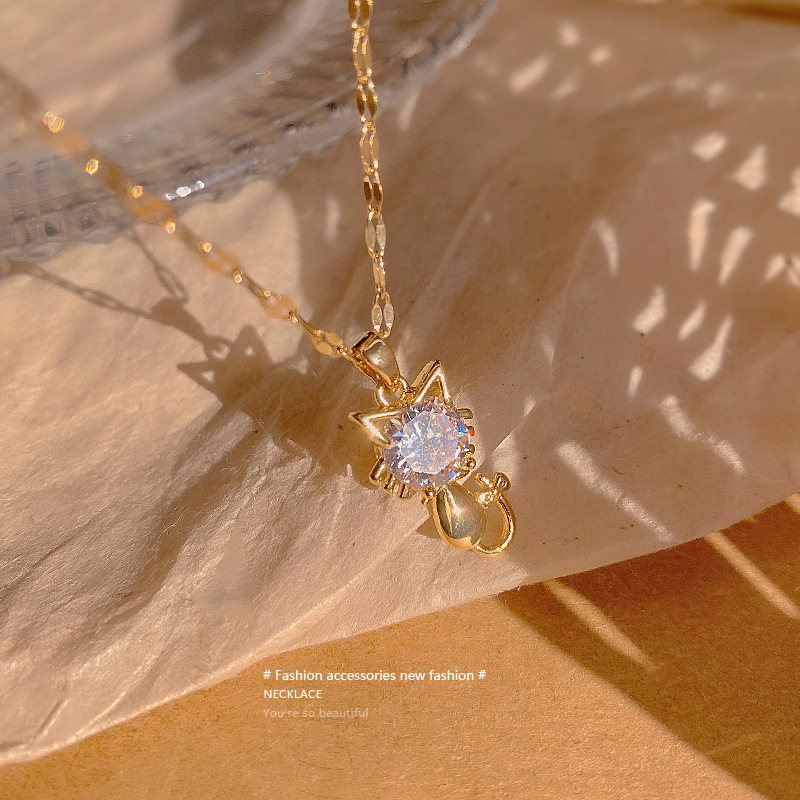 Ins風かわいい子猫ペンダントチタン鋼ネックレス女性超フラッシュジルコン鎖鎖小衆少女アクセサリー