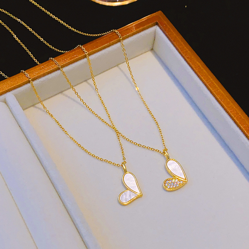 ホワイトシェルラブネックレスレディースニッチデザインダイヤモンドハート型ペンダントインターネットセレブライトラグジュアリースタイルファッション鎖骨チェーン