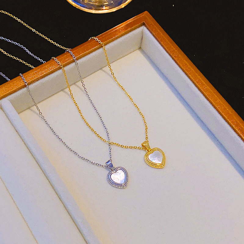 リアルゴールド電気メッキ天然シェルラブネックレスレディースニッチデザインライト高級鎖骨チェーンチタン鋼レースハート型ペンダント