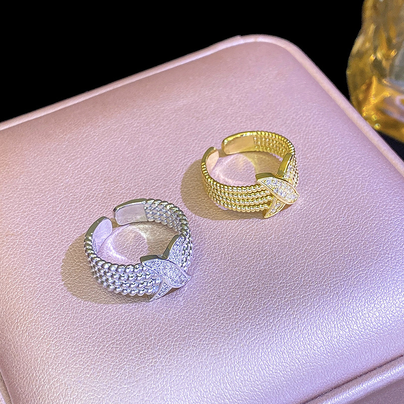 韓国版の流行の気質のアルファベットXジルコンの指輪の女性の大衆の設計感のネットの赤い指輪のファッションの百合の手の装飾品