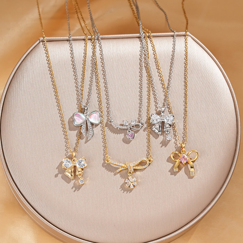 韓国ins風ジルコン蝶ネクタイペンダントチタン鋼ネックレス女性ファッションカラフルフリンジ鎖骨鎖アクセサリー卸売り