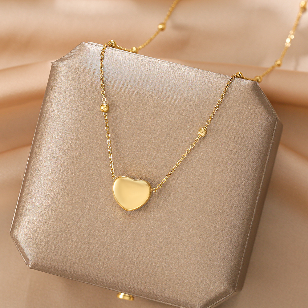 金色の小さな大衆の愛のネックレスの女性は色を落とさないネットの赤いチタンの鋼の小さい金の玉の鎖のシンプルな光沢のハート型のペンダント