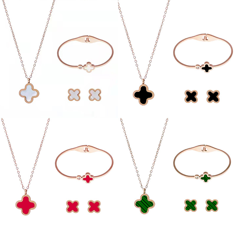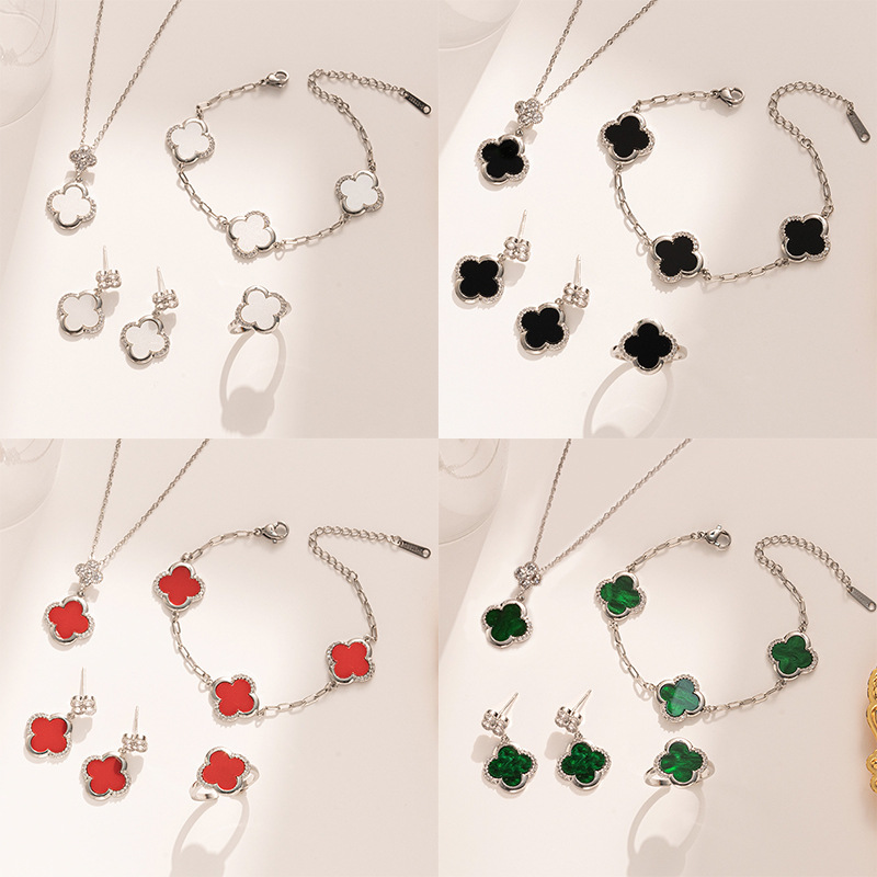 色落ちしないチタン鋼四葉草シリーズセットネックレス女性ファッション軽贅沢感ピアスブレスレットネット起爆アクセサリー