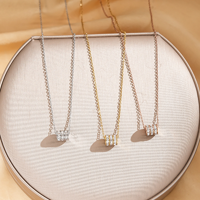 三列のドリルの小さい腰のペンダントのチタンのネックレスの女性の炉の中の真空の電気めっきは色を落とさないで鎖の鎖の軽い豪華な装飾品です。