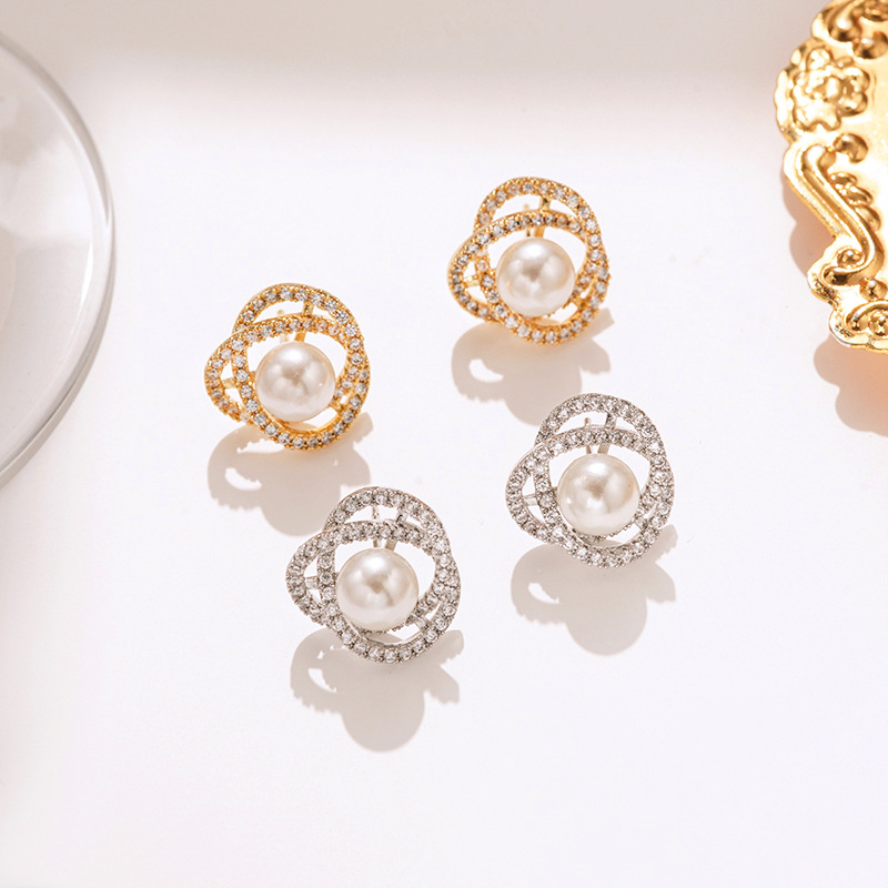 赤い本の同じタイプの小さい香風はジルコンのツバキの花の真珠のピアスの女性のファッションの気質の軽い贅沢なイヤリングの卸売りを象眼します。