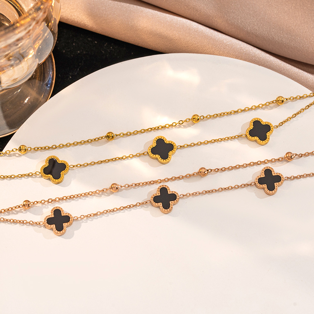 シンプルなステンレス二重豆チェーン四葉草ブレスレット女性ファッション百合デザイン感ネット赤アクセサリー卸売り