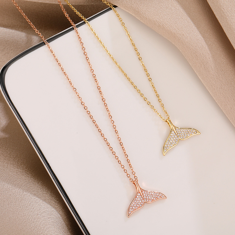 ファッショナブルな金メッキフルダイヤモンドフィッシュテールペンダントチタン鋼ネックレスフェミニンな高級デザインインターネットセレブ鎖骨チェーン卸売