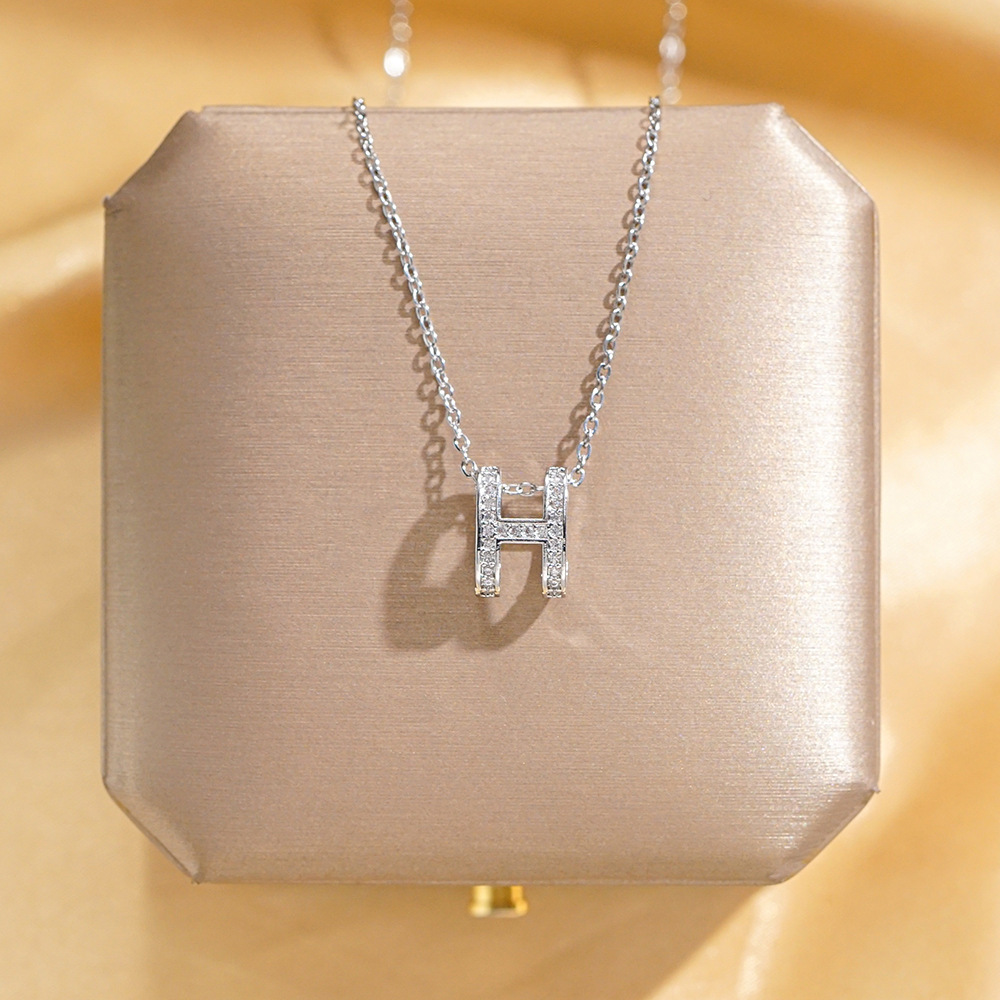 ディザトーン個性同項銀色満ドリルhペンダントチタン鋼ネックレス女insファッション小衆鎖鎖百合宝飾品