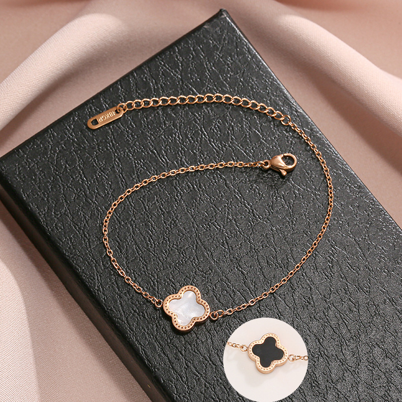 バラ金シンプル黒辺両面四葉草脚鎖女性ファッションチタン鋼色落ちしない夏ネット赤アクセサリー卸売り