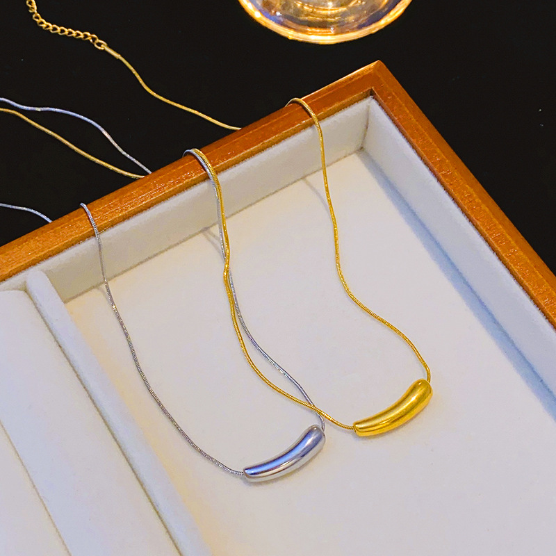 ステンレス鋼シリンダーヘビボーンチェーンネックレス女性ニッチ多用途ライト高級チタン鋼鎖骨チェーンインターネットセレブ気質ナスペンダント