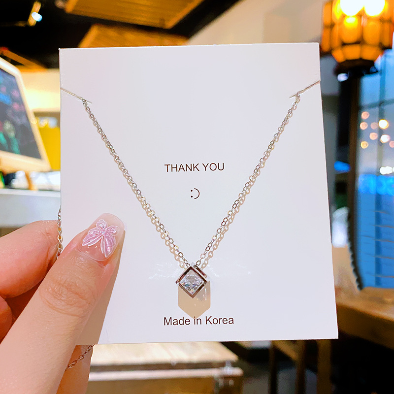 立体の四角形の精巧なジルコンのペンダントのチタンの鋼のネックレスの女性の大衆の気質の高級感の鎖の鎖の気のファッションのアクセサリ