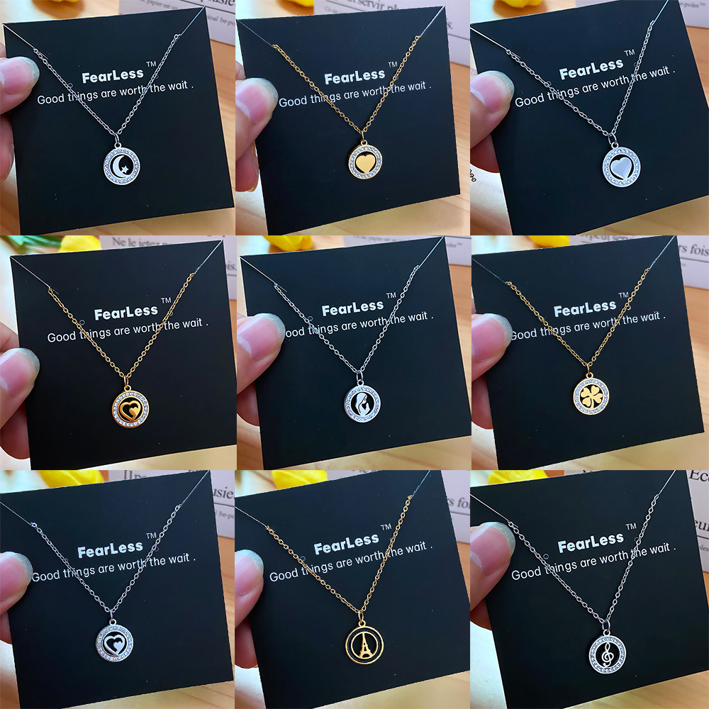 軽豪華でシンプルなドリル愛ネックレス女性ファッションチタン鋼色落ちしないネット赤鎖鎖個性高級感アクセサリー