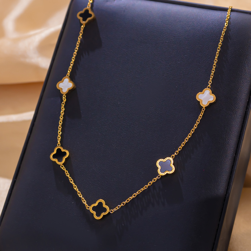 金色の豪華なドリル四葉草ネックレス女性白黒両面デザイン感ネット赤鎖骨鎖18k金メッキ首鎖