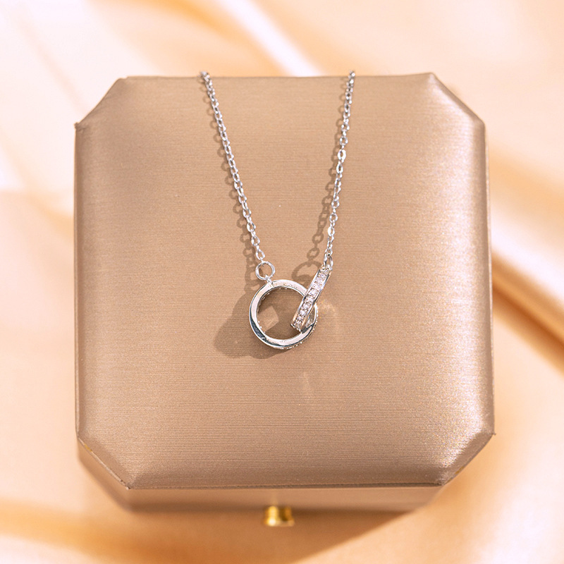 銀色のシンプルなミニはドリルの双環のネックレスの女性の大衆の気質の軽い豪華な鎖の骨の鎖の個性の円環の設計のペンダントを詰めます。