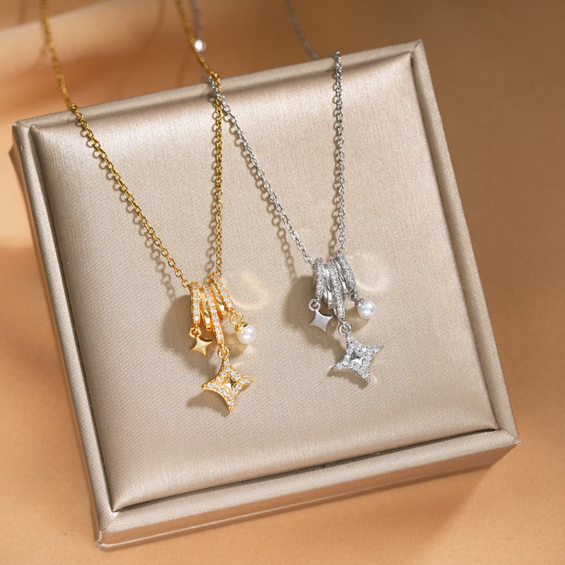 ジルコン六芒星チタン鋼ネックレスレディースファッション多用途インターネット有名人鎖骨チェーンニッチ気質デザインジュエリー卸売