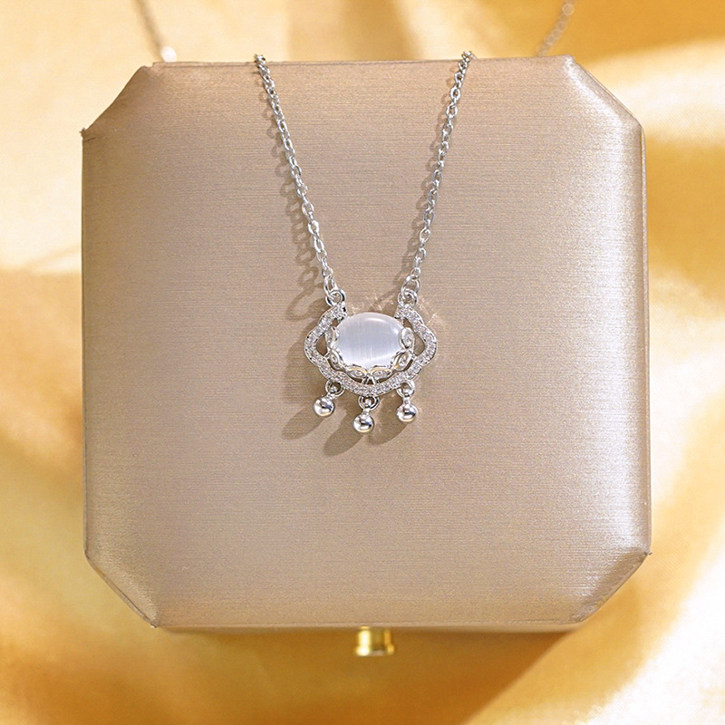 日韓デザイン感白k猫眼石長命ロックペンダントチタン鋼ネックレス