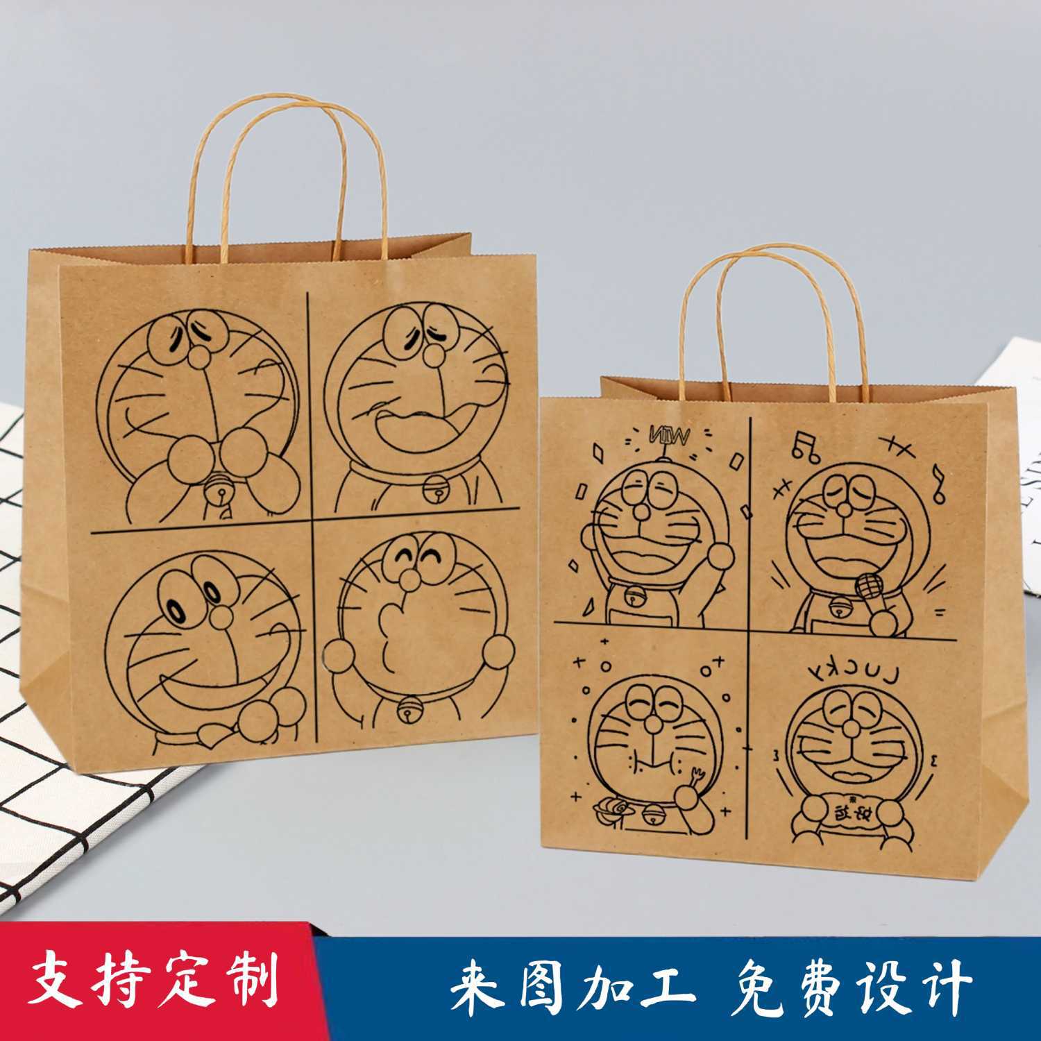 国境を越えたクラフト紙袋手提げ袋ドラえもんアニメ手作りギフト袋コーヒーミルクティーバッグ