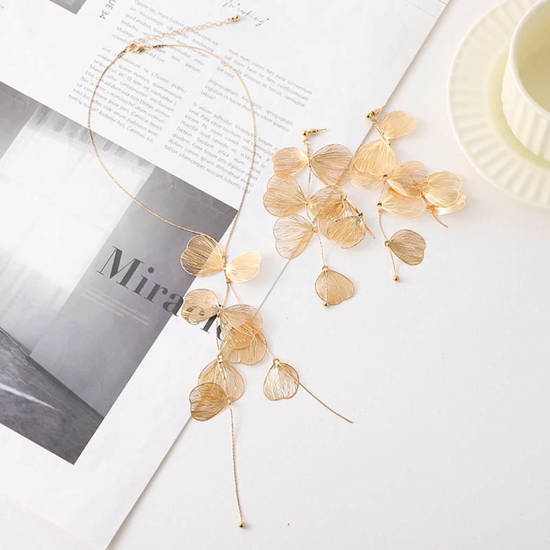 欧米のクロスボーダーの装飾品の大衆のデザイン感の銀杏の葉のフリンジネックレスの甘いクールな風の復古は女性の首輪を引き出します。