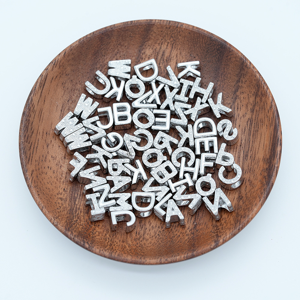 新しい合金の透かし彫りの英語のアルファベットのDIY装飾の銀色の数珠のリストバンドの首輪のアクセサリの部品