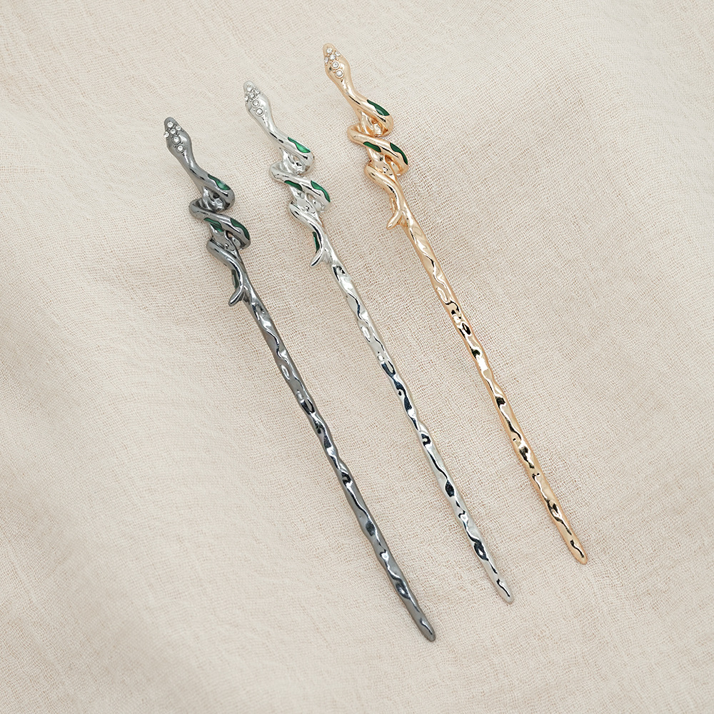 小衆高級感髪飾りins軽豪華緑モザイク霊蛇ヘアピン古風ファッションヘアピン潮盤髪飾り