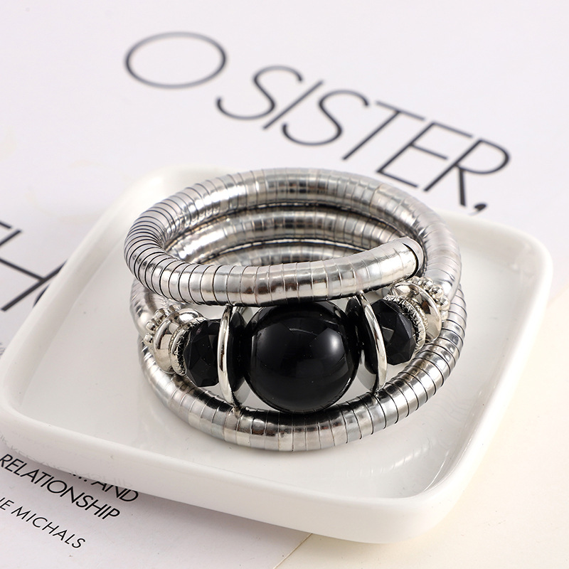 レディースクロスボーダー民族風ブレスレットファッション個性スペーサー手飾り欧米ブラック三輪多層ブレスレット