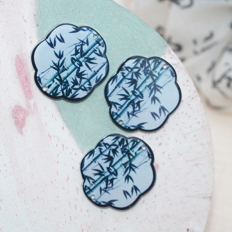 酢酸古風書道双穴水墨竹葉diy手作りヘアピンイヤリングペンダント高品質アクセサリー部品