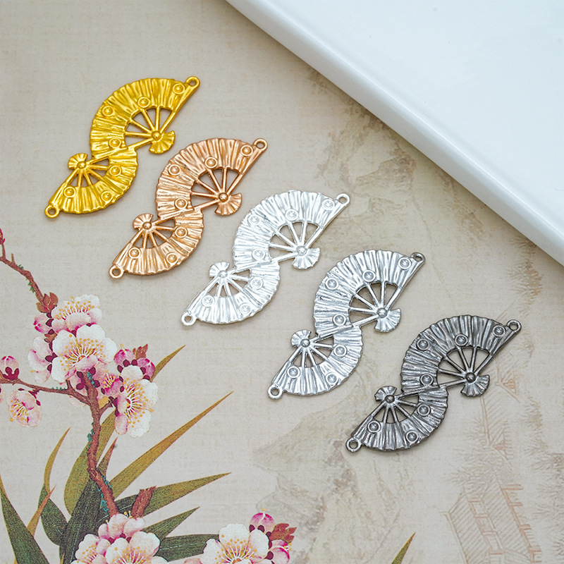 レトロdiy合金アクセサリー透かし彫りダブル扇子ペンダント古風服飾髪飾りネックレス手作りペンダント