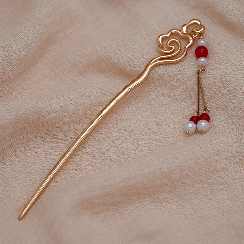 精緻なビーズペンダント古風ヘアピン長流蘇祥雲盤髪漢服古典宮廷シンプル気質ヘアピン