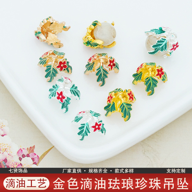 金色の油のエナメルの真珠は花の帽子の合金を掛けてブレスレットのネックレスの手作りのdiyのアクセサリのペンダントを掛けます。